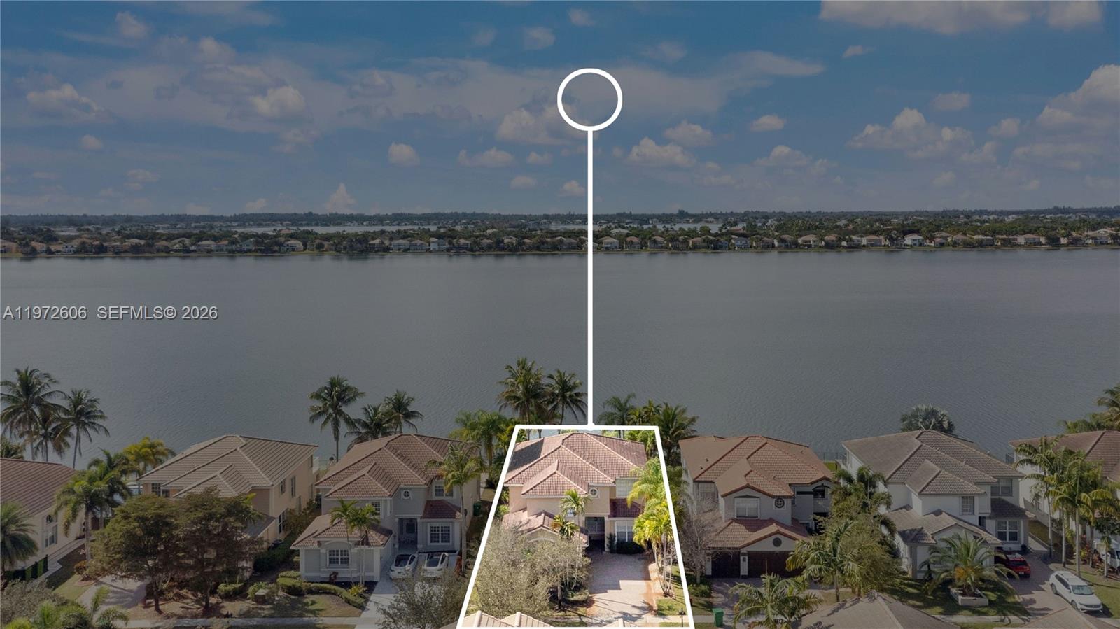 Breathtaking sunset views from your resort style backyard. Beautiful 5-bedroom, 3-bath waterfront residence showcasing abundant natural light, an open-concept design, and sweeping panoramic water views. A separate first-floor bedroom plus office provides excellent flexibility—ideal for guests, extended family, or in-law quarters with its own separate entrance. The expansive primary suite features a comfortable sitting area and a spa-style bathroom complete with Jacuzzi tub, freestanding shower, dual vanities, and custom-designed closets. An open kitchen with breakfast nook connects seamlessly to the spacious family room, complemented by formal living and dining areas—perfect for entertaining and everyday living. Volume ceilings enhance the airy feel. Accordion shutters throughout, heated pool via solar panels for improved energy efficiency. Enjoy peaceful waterfront living every day. Community amenities include a resort-style pool, tennis courts, and clubhouse. Rented furnished or unfurnished.