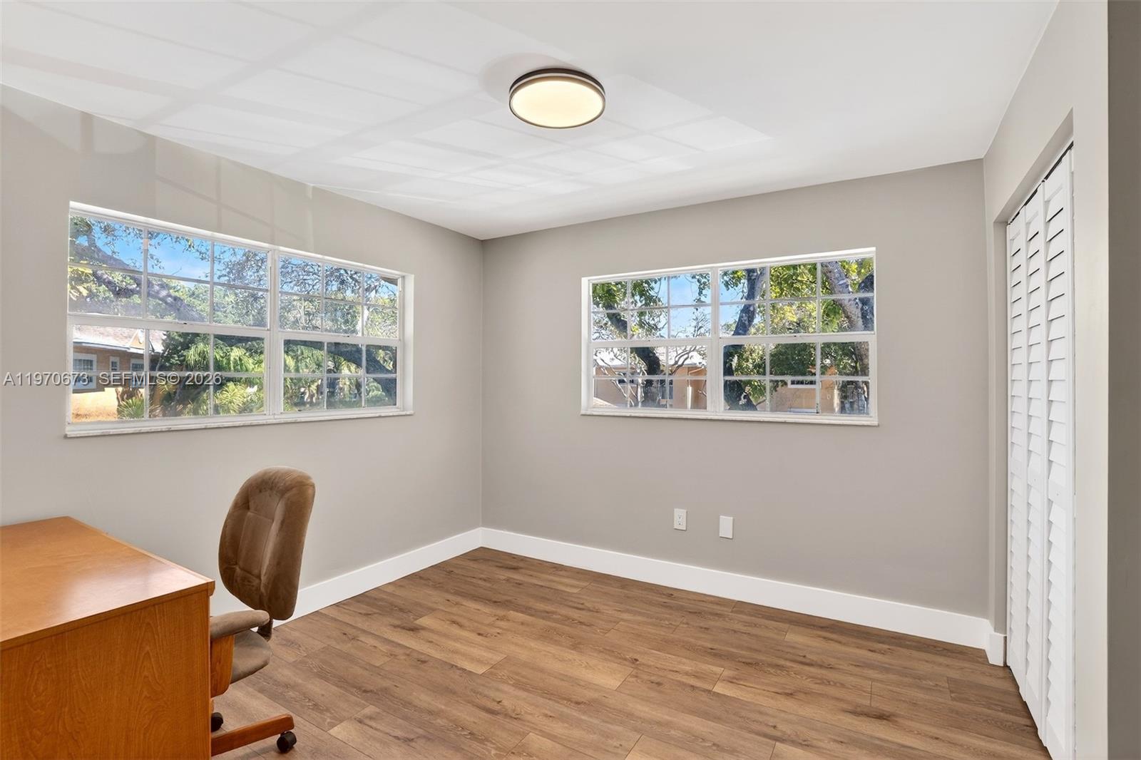 Stunning fully renovated 2 Bed/2 Bath corner condo just one mile from Dania Beach! This bright and spacious unit features a brand-new kitchen with new appliances, beautifully renovated bathrooms, in-unit washer and dryer, and new tile and laminate flooring throughout. Enjoy a screened balcony with a convenient storage closet. Includes two assigned parking spaces plus ample guest parking. Renter includes water/sewer. The community offers a sparkling pool and clubhouse. Ideally located near beaches, restaurants, shopping, and major highways—perfect for enjoying the best of South Florida living! Pets welcome up to 20 lbs. Move in only $4,700 - first month and 1 month security! If desired bed and desk can stay, renters choice.