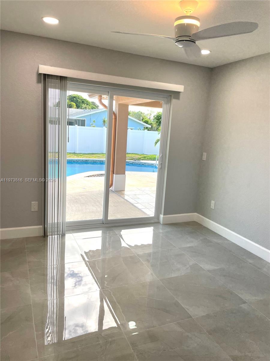Beautiful and modern home, Completely remodeled, high impact Windows and doors, large open counter kitchen, porcelain floors, stainless steal appliances, this house is located in an excellent neighborhood and school district. Salt system pool and beautiful porch with huge Tiki for entertainment. The price includes pool maintenance. Tenants will leave February 2026, showing begins March 1st. A must see, new listing won't last long.