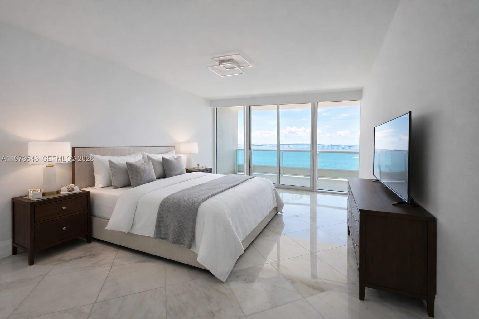 Spectacular bay views from this spacious 2bed/2.5 baths at the exclusive Santa Maria. Direct access from the elevator to a private foyer. Open floor plan with large living-dining area and all bedrooms overlooking Biscayne Bay. Expansive balcony that can be accessed from every room. Floor to ceiling windows, marble floors in living areas & baths. Eat in the kitchen with top of the line appliances, separate laundry room . Amenities include: state of the art fitness center, club house, tennis court, pool & spa.