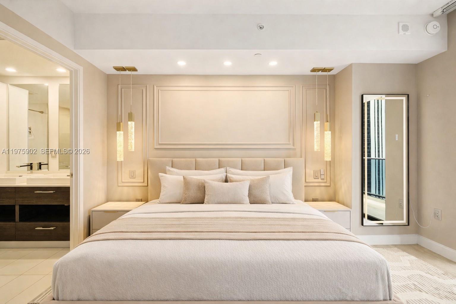 Fully furnished, renovated corner 2BR + Den, 2.5BA residence at Brickell Heights East in the heart of Brickell. Thoughtfully upgraded with custom built-out closets & drawers, crown molding, wood paneling details, a stone-quartz accent wall, upgraded lighting, electric window treatments, and a new LG W/D. Kitchen features new Bosch dishwasher + water filtration system. Highly desirable east and west exposures offer both sunrise and sunset views. Expansive wraparound balcony and floor-to-ceiling windows fill the residence with natural light. Excellent storage throughout. 1 assigned parking space. Amenities include: Rooftop pool, state-of-the art fitness center, jacuzzi, kid's playroom, 24/7 concierge, steam + sauna rooms, and more! Prime location steps from Brickell City Centre, dining, shopping, and nightlife. Easy to show; call LA.