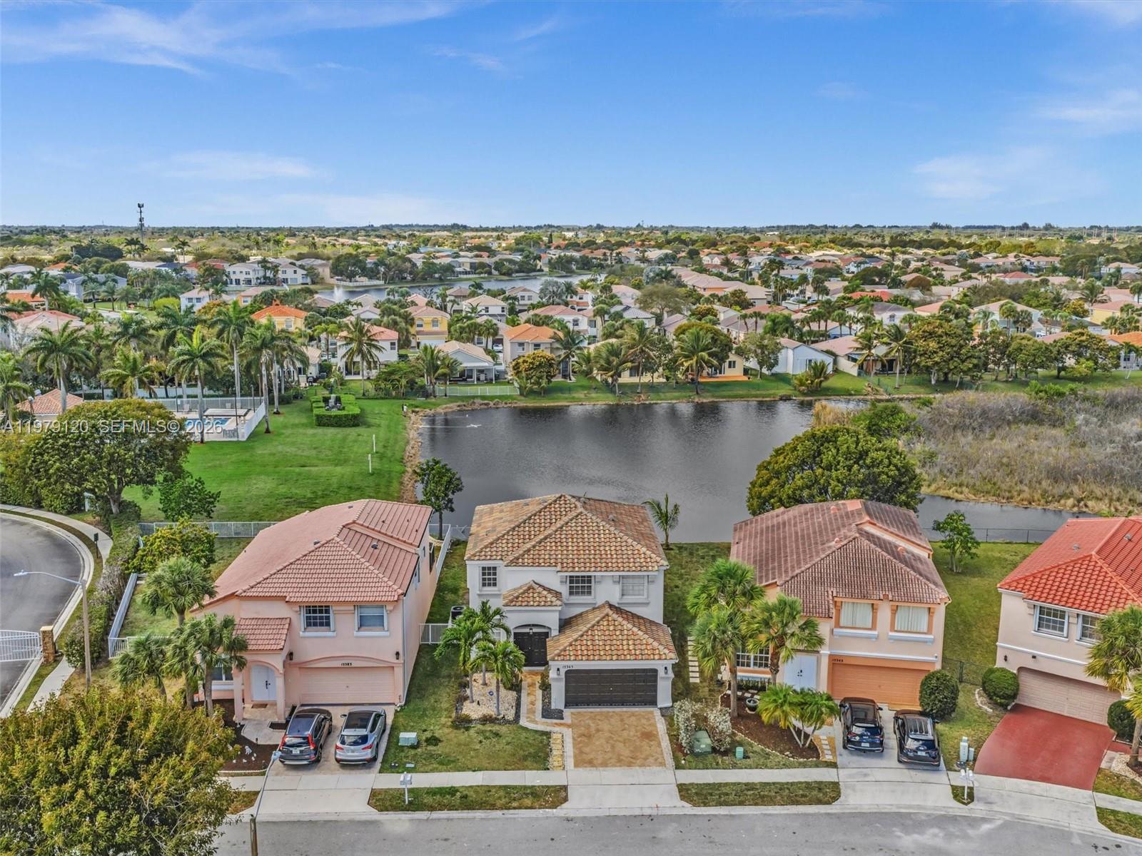 Beautiful lakefront residence located in the gated community of Canary Bay at Towngate in Pembroke Pines. This spacious home features 4 bedrooms, 2 full bathrooms, and 1 half bath with a bright and functional split floor plan. Enjoy spectacular lake views from all the main social areas of the home. The updated open kitchen features a breakfast nook and connects seamlessly to the living spaces, creating a comfortable setting for everyday living and entertaining. The first floor showcases tile flooring throughout, while the second floor features laminate flooring. The generously sized primary suite offers stunning lake views and his & hers walk-in closets, along with a large primary bathroom featuring dual vanities, a soaking tub, and an updated shower. The spacious fully fenced patio overlooks the lake, providing the perfect setting to relax and enjoy the South Florida lifestyle. Available for immediate occupancy. Canary Bay at Towngate is a gated community in West Pembroke Pines known for its family-friendly atmosphere and resort-style amenities, including a clubhouse, fitness center, tennis courts, and community pool for residents to enjoy. Ideally located near I-75, residents have convenient access to shopping, dining, parks, and top-rated schools. Don't miss this opportunity, this property won't last!