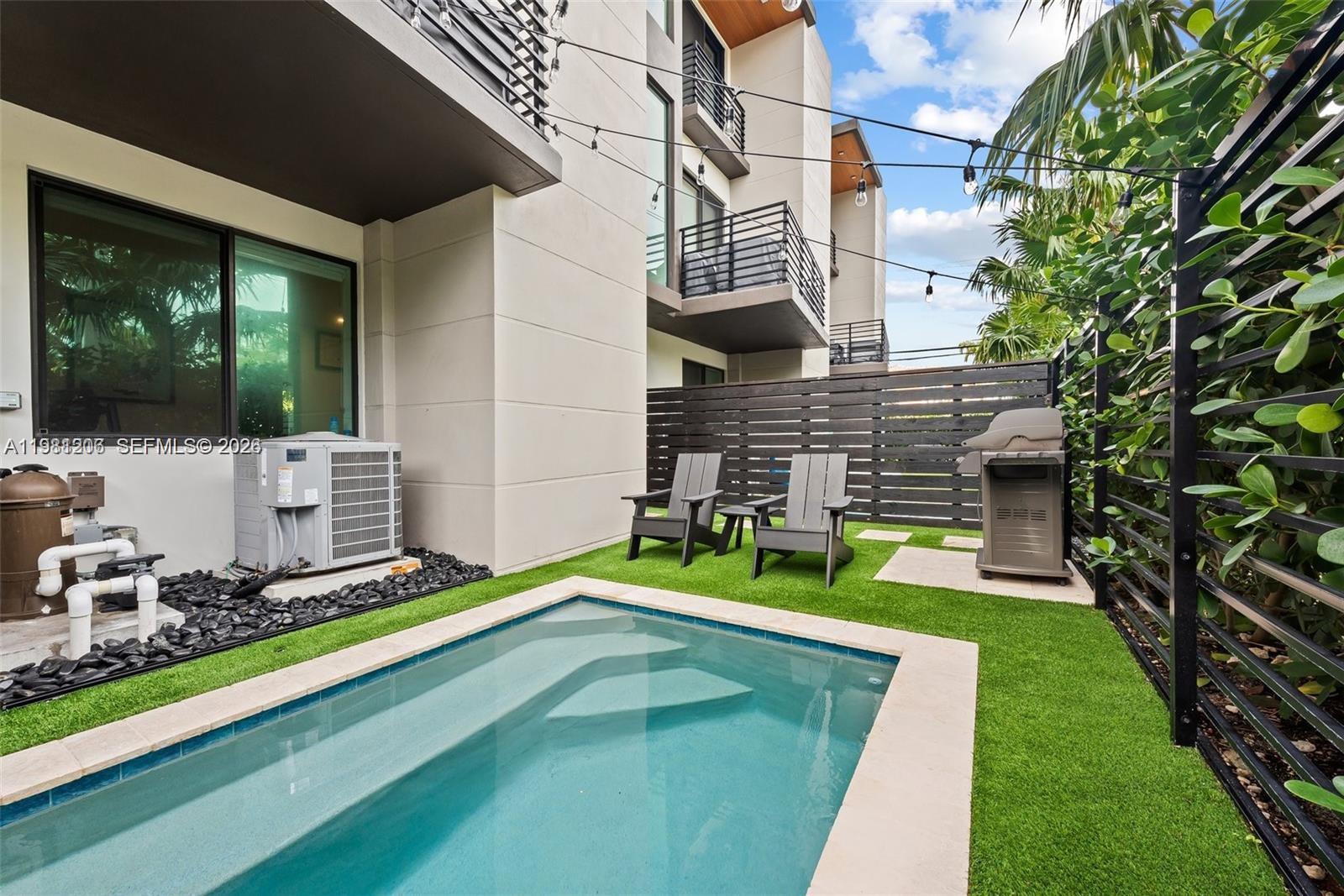 Welcome to a modern oasis of luxury! This beautiful townhome built in 2022 offers a private and contemporary living experience in a unique HOA of 8 units. The space consists of 3 bedrooms and 3.5 bathrooms, a 2-car garage equipped with a ready to use EV outlet, and guest parking. A stylish plunge pool with vivid market lights and high quality turf to complete the backyard. The home includes 10-foot ceilings, porcelain flooring, generous closets, and high quality blinds throughout. The spacious living room, stunning kitchen, and deck overlooking the pool are perfect for seamless and effortless hosting. This home is the epitome of STATE-OF-THE-ART LUXURY. CONVENIENTLY LOCATED NEAR WHOLE FOODS, GALLERIA MALL, FINE DINING, AND THE WHITE SANDY BEACHES OF FT LAUDERDALE. EASY TO SHOW. FURNISHED. CALL OWNER FOR SHOWINGS - STEFANO CANALE 954-651-1438