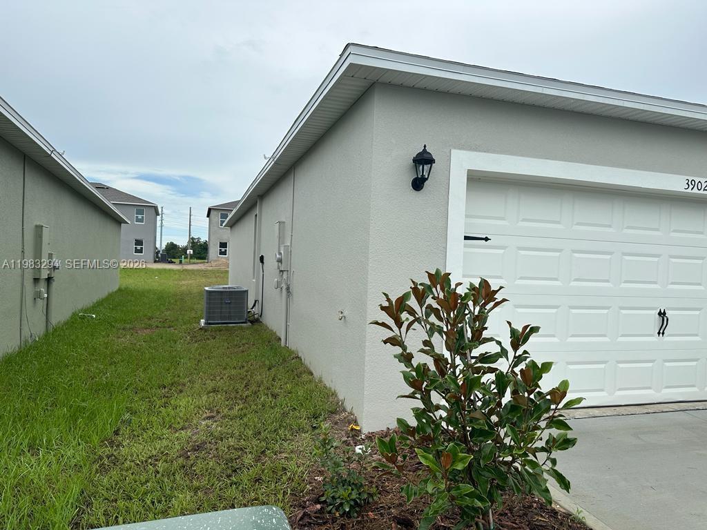 Spacious 4-bedroom, 2-bath single-family home located in a quiet, family-friendly community in Bartow, just 10 minutes from Lakeland. Property features a large fenced backyard with extended concrete patio, perfect for outdoor entertaining, and a 2-car garage. The primary suite offers two closets for ample storage. Home is equipped with a Samsung smart refrigerator with digital screen and Alexa integration, Samsung washer and dryer (like new), glass-top range, and dishwasher. Security system installed with door alarms and exterior cameras. Community amenities include a pool, dog park, and playground.