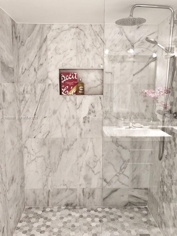 Beautifully renovated and spacious 1-bedroom, 2 full-bath residence featuring a bright open-concept layout. The original second bedroom has been converted into an expansive living, dining, and kitchen area, creating a modern and airy feel. The large kitchen flows seamlessly into the living space, perfect for comfortable living and entertaining. The primary suite offers a mini walk-in closet and a stunning master bathroom with a large modern shower, sliding glass doors, and dual sinks. Additional features include a bathtub in the second bathroom, multiple closets (entry, bathroom, and bedroom), and an exterior AC unit with private access. The unit includes one assigned parking space, with the option for a second (subject to availability), guest parking, and street parking. A private mini storage space is also included, with the option to rent additional storage. Laundry facilities are conveniently located on the same floor. The building offers excellent amenities: pool, gym, sauna, barbecue area, tennis courts, game room, event salon, and bike storage. Enjoy 24-hour security with lobby attendants and a very quiet, respectful community. Offered at $2,600/month unfurnished or $3,000/month semi-furnished.