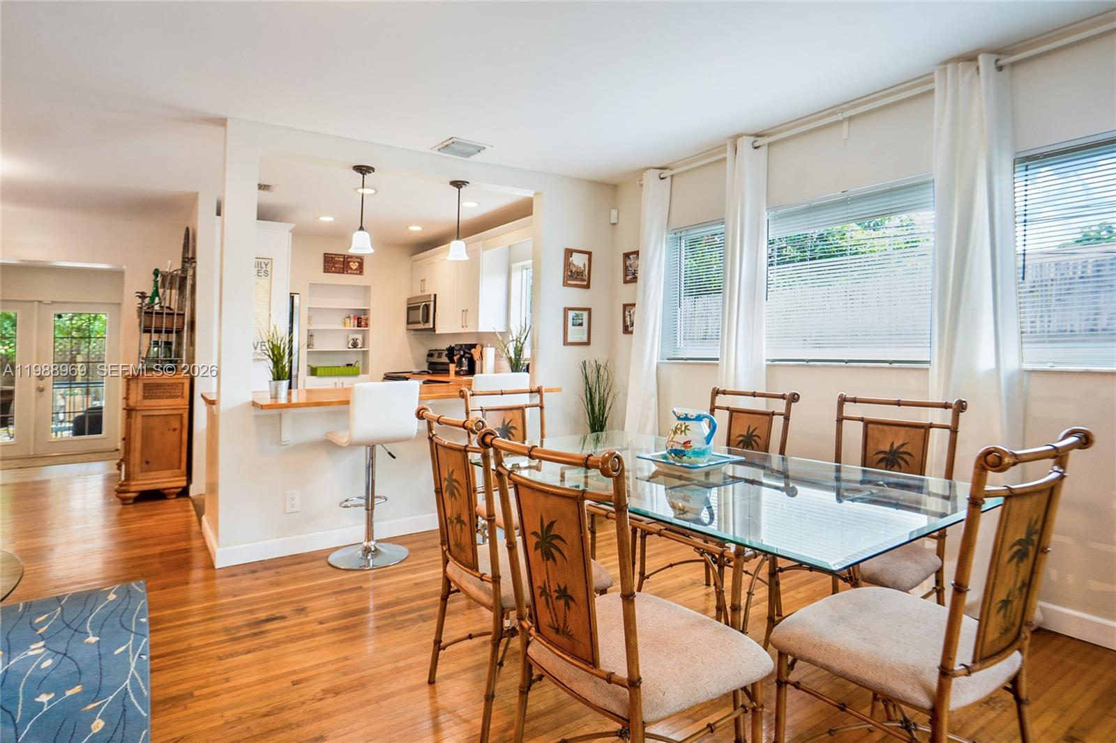 Available long or short term fully furnished: ask for available dates! Great cozy home for up to 12 guests, 5 minutes from Hallandale Beach & Hollywood Oceanfront, with its miles of boardwalk along the sandy beach; located a few blocks from Gulfstream Park at the Villages & a short drive to Aventura Mall. This property has 4 nice size bedrooms + an entrance den & a Florida room overlooking the private front yard. Gorgeous bathrooms. Kitchen opens to the entire living/dining/media room & Florida room. Property is surrounded by lush landscaping for privacy & completely fenced in. There are 2 entrances from both front & back yards. Huge mango tree can be admired from the private covered outdoor deck. 1 wing has 3 bedrooms. The 4th bedroom is completely separate on other side. Lots of parking.