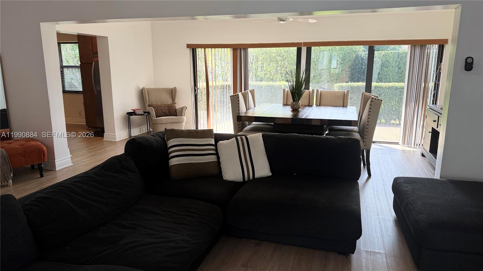 Welcome to this stunning 3-bedroom, 2-bathroom single-family home in the Woodlands community of Tamarac! Perfectly positioned on a corner lot with convenient access to the Florida Turnpike. Step inside to discover a spacious open floor plan where the family and dining areas flow seamlessly, creating an inviting atmosphere perfect for both everyday living and entertaining. A standout feature is the elegant glass wall office space, which is ideal for remote professionals, online entrepreneurs, or anyone seeking a sophisticated dedicated workspace. The home features a beautiful kitchen with a center island, elegant wood soft-close cabinets throughout, and stainless-steel appliances including a double oven, dishwasher, refrigerator, and separate freezer. Peace of mind comes standard with hurricane impact windows and doors throughout. The outdoor space provides beautiful open patio surrounded by manicured landscaping and tropical palm trees. Located in the family-friendly Woodlandscommunity with easy turnpike access, you'll enjoy quick commutes to Fort Lauderdale, Miami, and beyond.