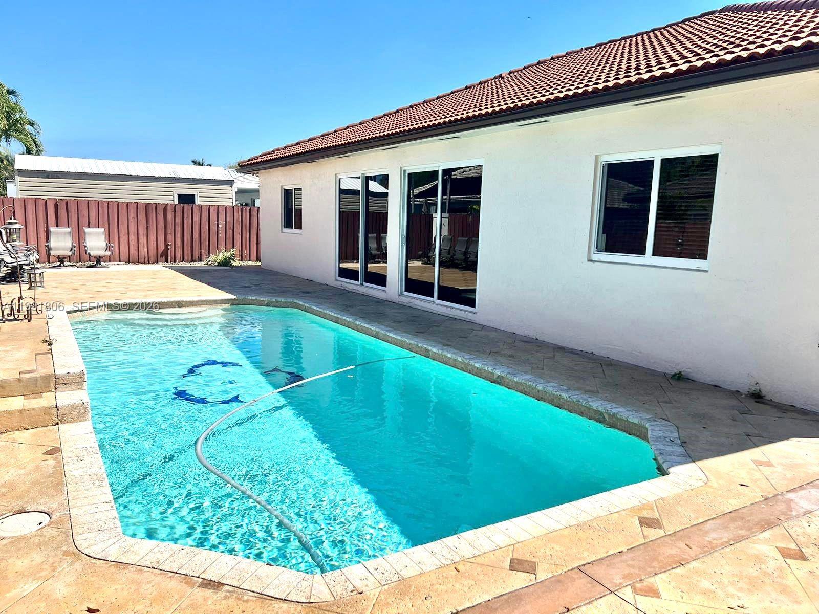 This Lovely, spacious, well-kept, corner lot Single Family home is in a very inviting area , where everything is conveniently located. NO ASSOCIATION; NO PET. The community is very quiet and nearby parks & best Miami school. It features tile flooring all throughout home, impact doors & windows, New A/C, security camera, water filter system, Outdoor salt pool with enough lateral space to even fit a boat, and a full garage for extra storage or parking.