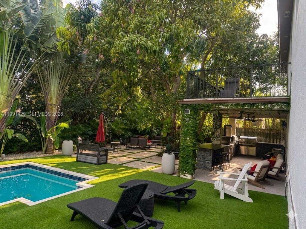 Beautiful home in a private community with a resort-style backyard filled with lush plants and a relaxing courtyard. Enjoy a sauna, plus two BBQ areas (gas and traditional), perfect for entertaining. The property also includes a separate outdoor room with a full bathroom—ideal for guests or a private workspace. A unique home designed for comfort, privacy, and outdoor living.