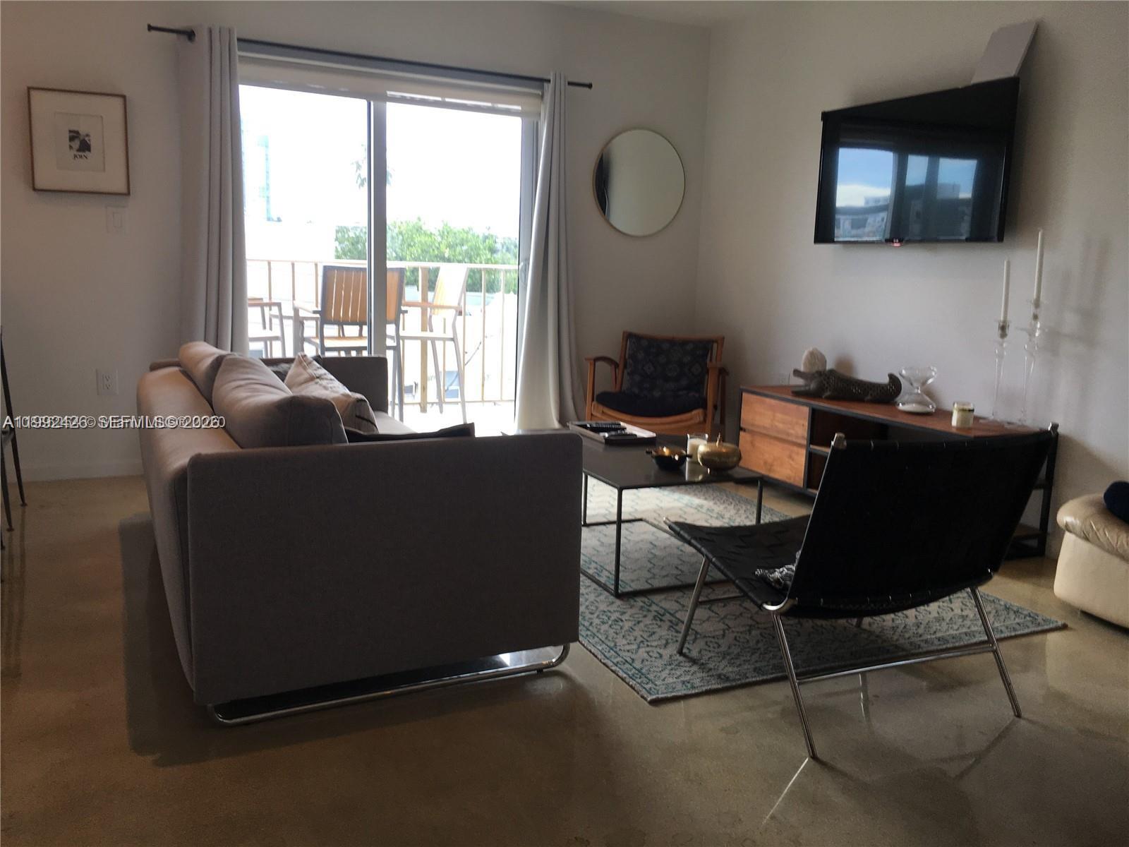 Fully Furnished Elegant Newly Renovated 1 bedroom 1 1/2 bath W/ GARAGE PARKING Fantastic Chef Kitchen All New Stainless Appliances Beautiful Polished Cement Floors New Washer and Dryer New Central AC Unit with WIFI connection. Surround sound throughout. Minutes from the Beach and Shopping. You Must See