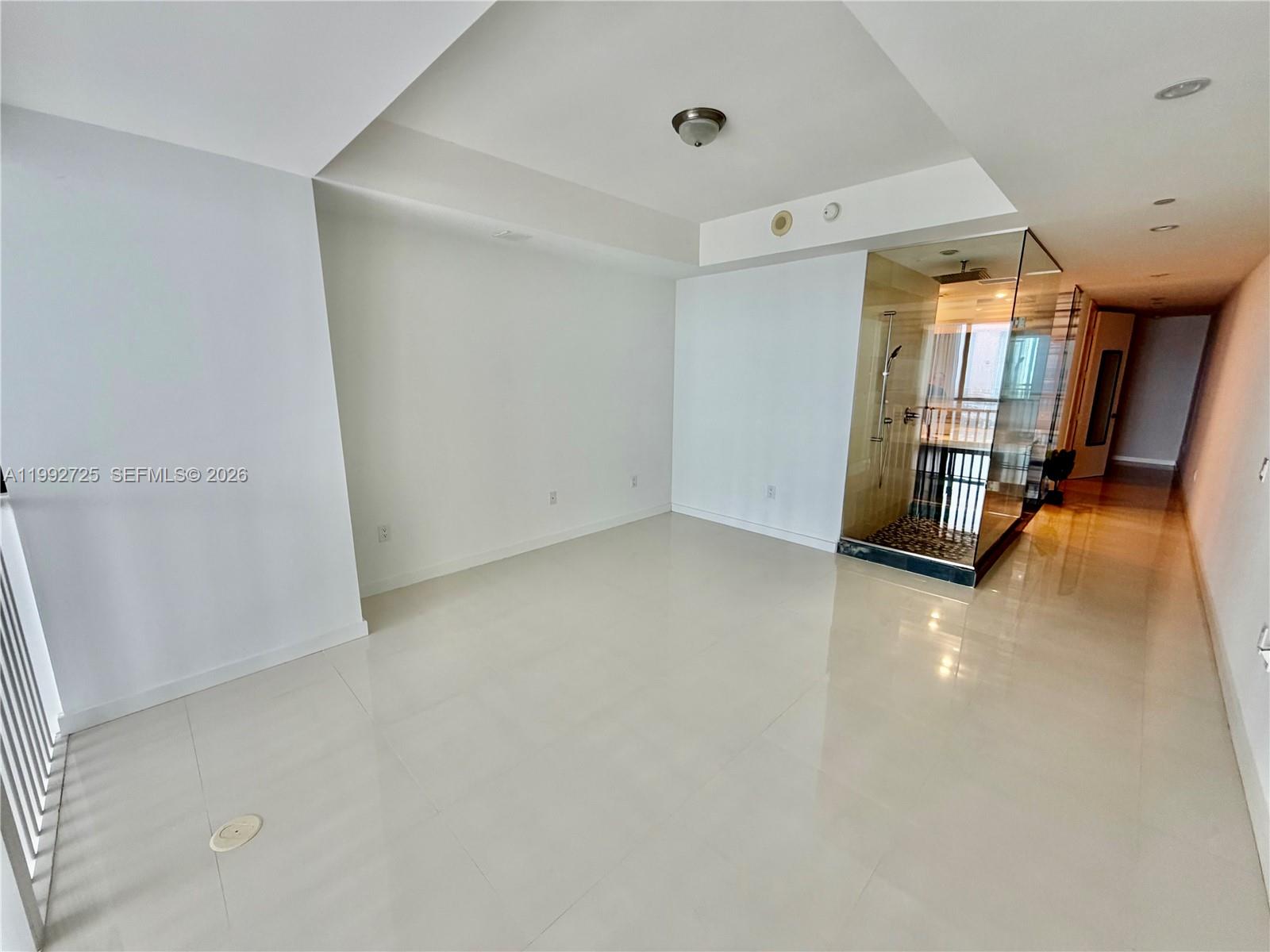 Direct ocean view. Large 1 bedroom + den with 2 full bathrooms. 2 story residence with white floors and 20 ft ceilings. Closet built ins, large laundry room, private spa, fitness center, pool, restaurant.