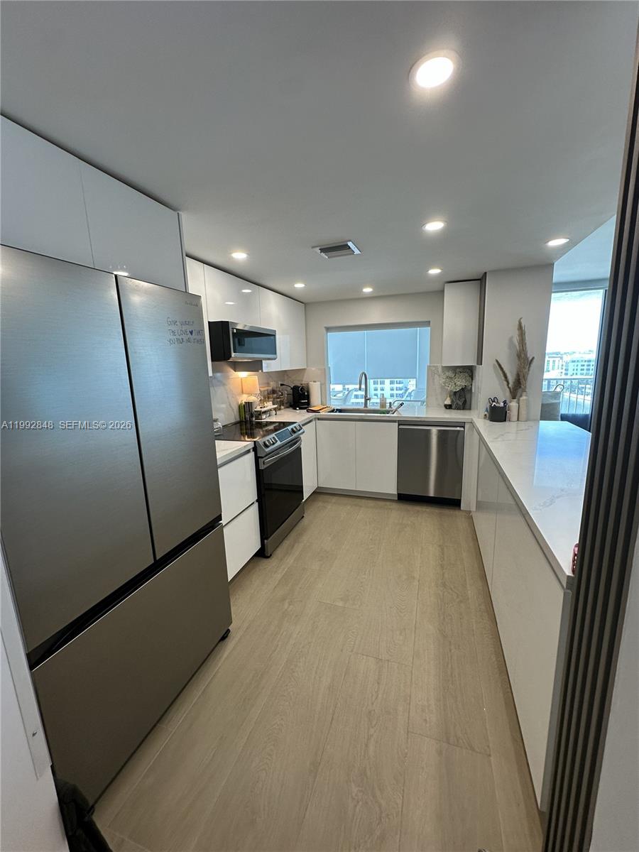 Completely remodeled ocenfront unit in the Faena District area. The beach is your backyard. Enjoy Ocean views and beautiful sunsets from this pristine unit featuring 1bd plus den/guest bd, 2 full bathrooms, porcelain tile throughout. Kitchen features Samsung SS appliances and quartz countertops open to the dining/living room area. One parking space included. Building featurs 24 hr front desk, cameras and fob access. Amenities include pool, sauna, gym, recreation rooms. Cable and high speed wifi included in rent. Transportation, restaurant, groceries and shopping just steps away. Easy to show.