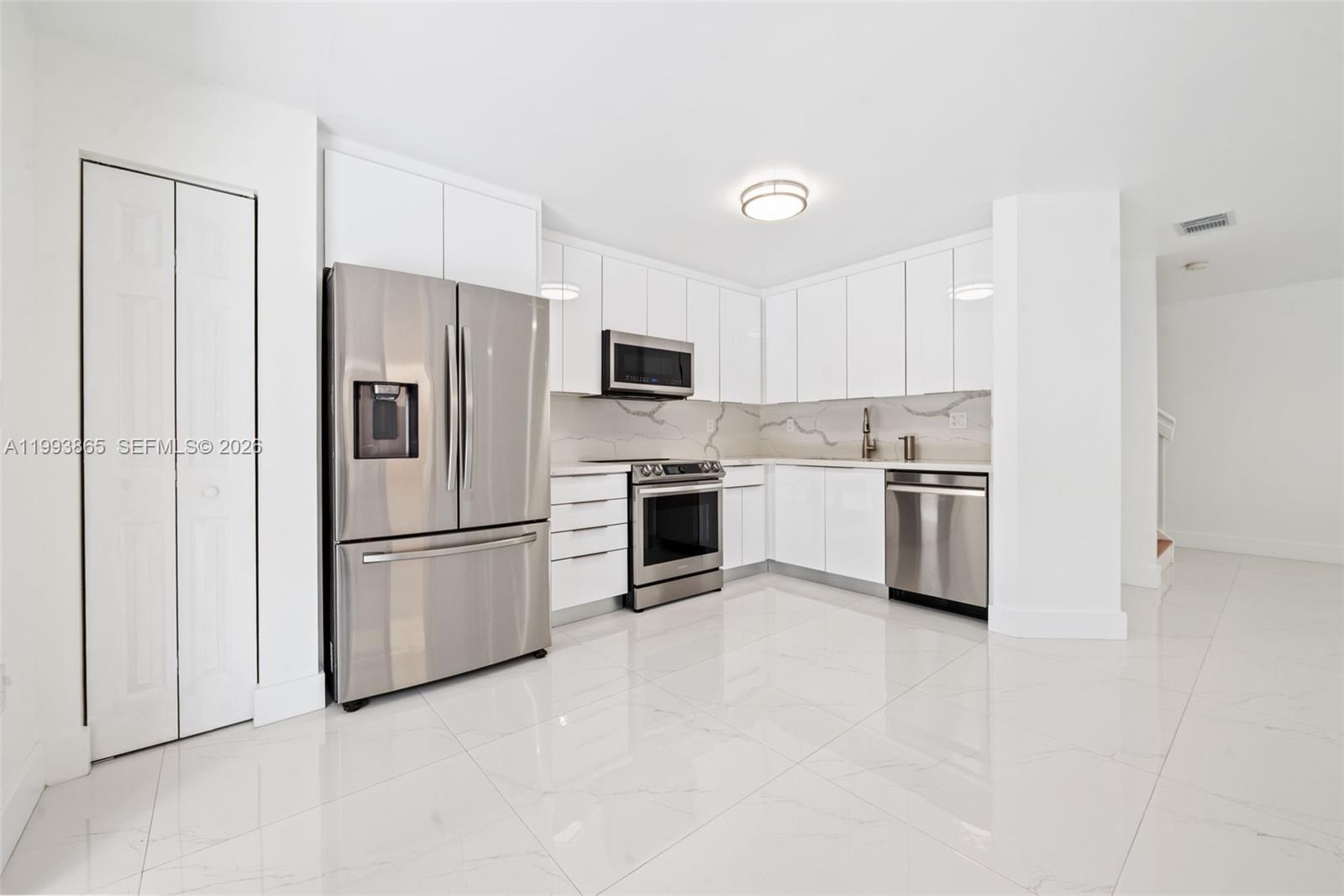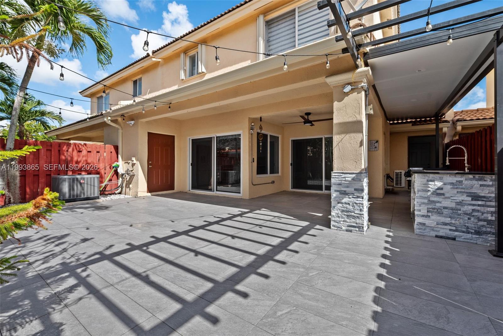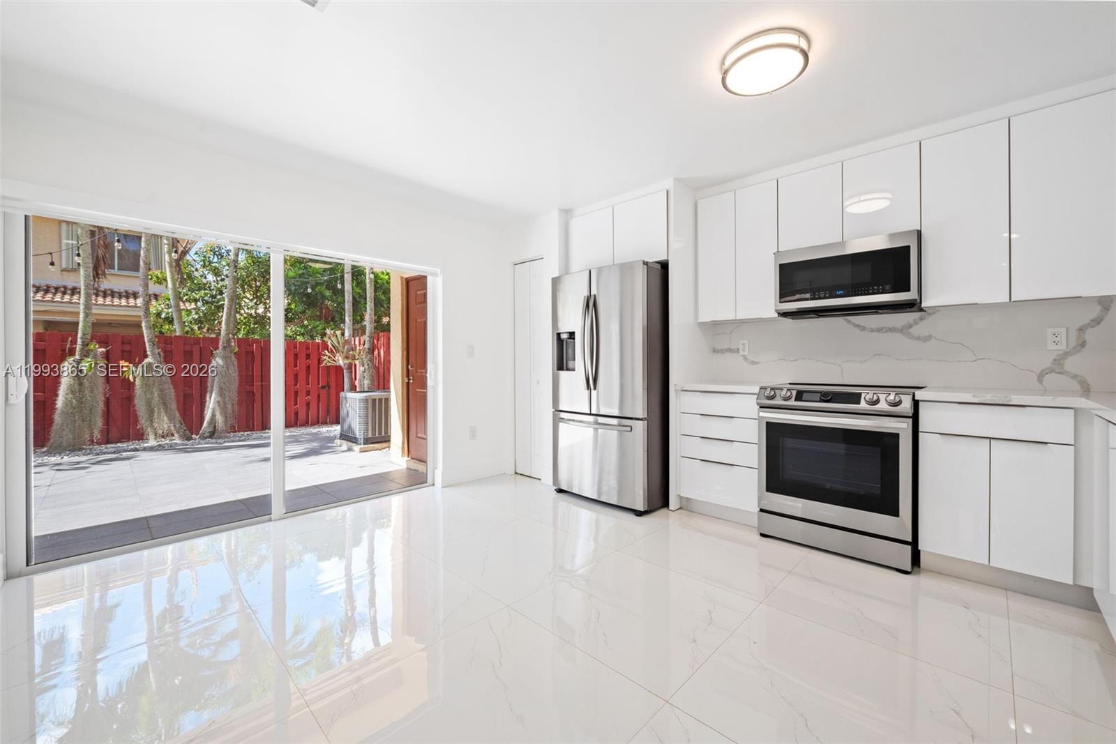 Stunning townhouse for rent featuring 3 bedrooms, 3 fully renovated bathrooms PLUS Den, ideal for office or additional living space. The home showcases porcelain tile flooring on the first floor and wood flooring on the second level and staircase. Modern kitchen with stainless steel appliances. Spacious private patio with modern flooring, pergola, and built-in BBQ, perfect for entertaining. Charming front porch entry. Additional utility/storage room with independent access connecting to the patio. Extra area in the house with private bathroom offers flexible use as office, guest space, or recreation room.