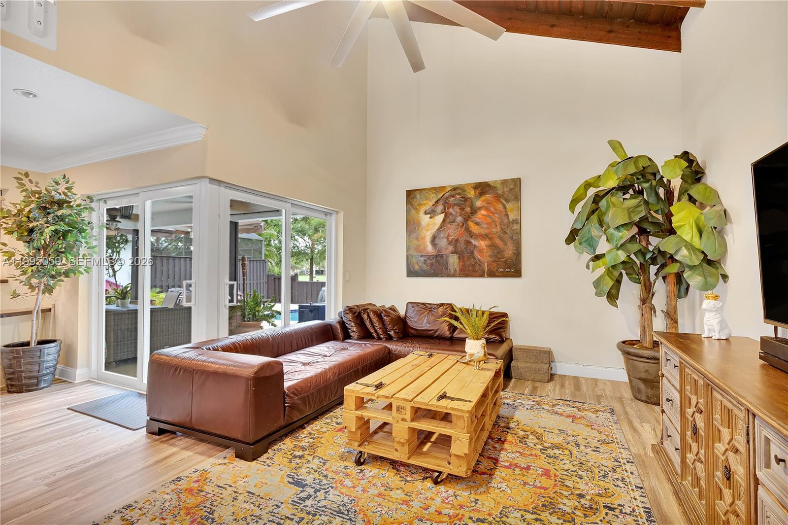 Stunning 3BR/2.5BA pool home with direct golf course views in the highly desirable Arbor Green community. This move-in ready residence features all new impact windows and doors, a bright open layout with soaring vaulted ceilings, and upgraded flooring throughout, luxury vinyl downstairs and wood laminate upstairs. The kitchen has granite countertops and ample storage. Situated on one of the largest lots in the neighborhood, the expansive front yard with artificial turf offers a rare level of space and curb appeal. The backyard is designed for true South Florida living, featuring a fully resurfaced pool and a newly renovated travertine pool deck, ideal for entertaining or relaxing in privacy. Additional highlights include tons of storage with two exterior sheds, large under-stair storage, and generous closet space throughout. Prime location just minutes from premier shopping, dining, parks including C.B. Smith Park, and top-rated schools and medical centers. Video tour available upon request.