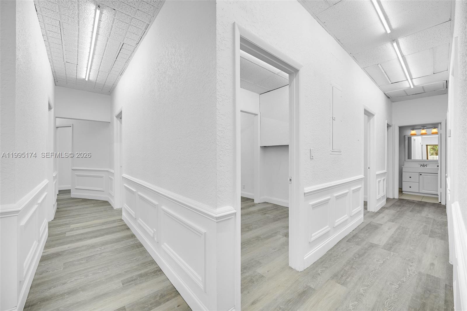 Spacious office suite featuring multiple private offices, a restroom, and a welcoming foyer. The layout includes several hallways that provide an efficient flow and allow for a functional distribution of workspaces. Ideal for a variety of professional uses such as medical, legal, administrative, or corporate offices. The property offers multiple private rooms that can be used for offices, consultation spaces, or meeting rooms.