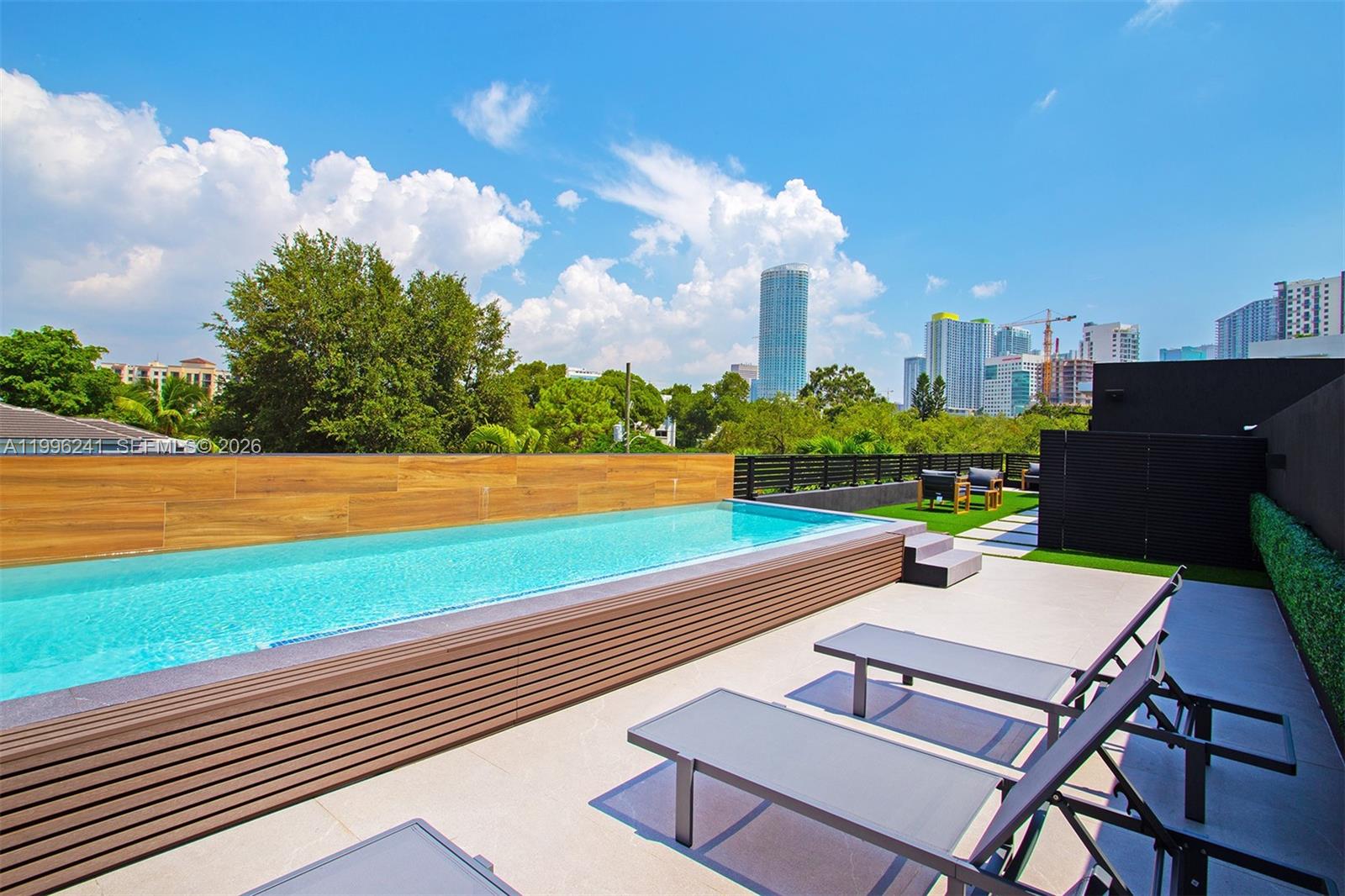 Experience the epitome of luxury living in just outside of Brickell, Miami's vibrant financial district and urban center. These exclusive residences offer an unparalleled lifestyle with exceptional design and premium features. Magnificent three-bedroom, three-and-a-half-bathroom residence that boasts 2,980 square feet of elegantly designed living space under A/C. The highlight of this home is the private rooftop terrace with a pool, offering panoramic views of Brickell's skyline. The master bedroom is a sanctuary, featuring a private garden patio, LED-lit closets, and integrated speakers powered by a Sonos amplifier. The second floor houses a spacious family room that opens onto a large balcony, perfect for entertaining or relaxing while taking in the urban vista.