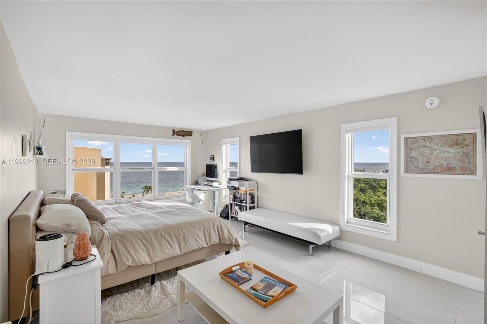 Mesmerizing views from this FULLY RENOVATED and FULLY FURNISHED corner unit on the 14th floor. Direct ocean views from every room. Rarely available south east facing corner unit with 270 degree views of Ocean, Intracoastal & downtown. Modern and contemporary design. Walk in closet. Washer & dryer in unit. New stainless steel appliances and filtered water. Two to three min walk to beach, Bonnet House Preserve & Hugh Taylor Birch State Park. Short bike ride to LAS OLAS. Walk to over a dozen restaurants, bars and coffee shops, Publix & Galleria Mall. You will be awestruck by the sunrise over the ocean and the night lights of downtown Fort Lauderdale. Watch the cruise ships leave Port Everglades from your bed. Very secure building with FOB access and 24 hour live security/front desk attendant. One parking space. Minimum 6month lease.