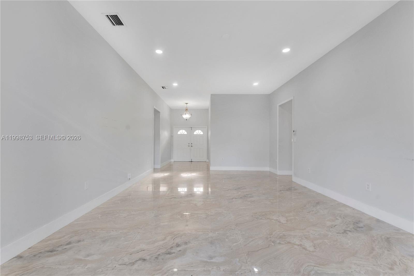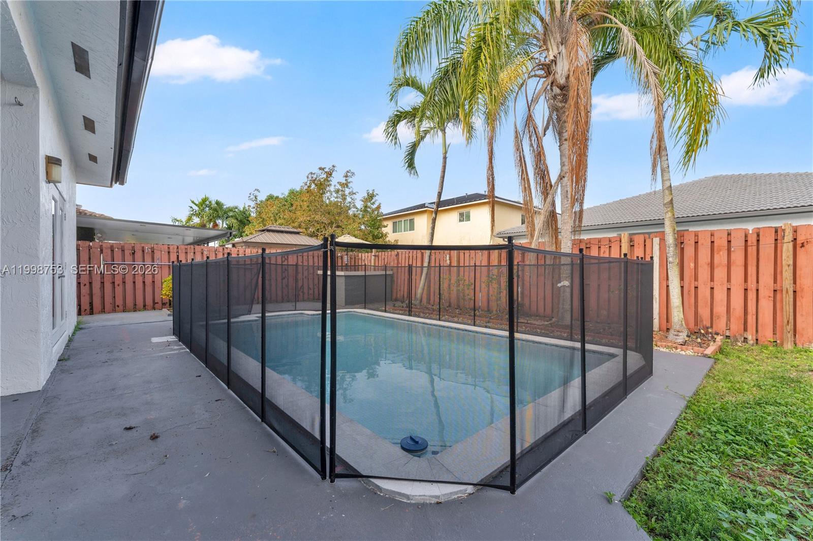 No HOA + Fast Approval + Pool Home with Studio—Move-In Ready! Beautiful 3BD/2BA home in Fantasy Reef at Corsica North! Features porcelain flooring throughout, 10-ft ceilings, updated kitchen with granite countertops, wood cabinetry & stainless steel appliances. Bathrooms remodeled (2023) and A/C replaced (2022). Garage partially converted into an office/studio connected to the home (not an efficiency). Enjoy a spacious backyard with pool & bar area, perfect for entertaining, plus circular driveway. Prime location near A+ schools, London Square, Zoo Miami & major roads. No association, fast approval, pool service included. Owner interview required. Easy to show.