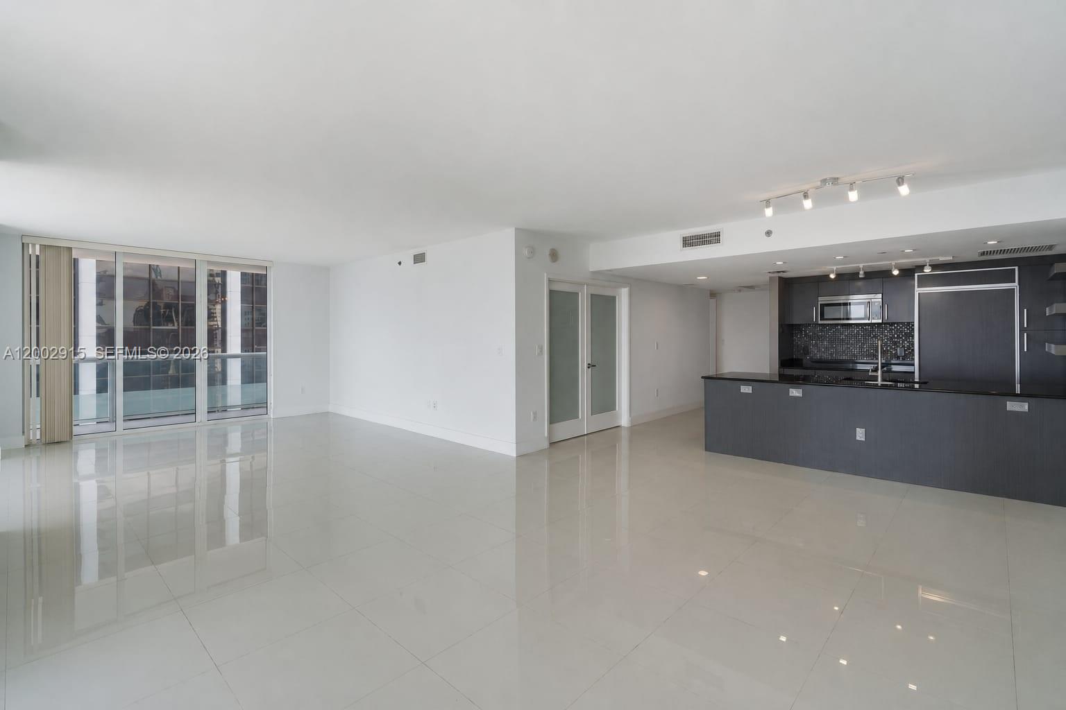 Experience unobstructed views of Biscayne Bay, the Port of Miami, Miami Beach skyline, and cruise ships from this spacious 3BR/2BA corner unit in the heart of Downtown Miami. Offering nearly 1,800 sq ft, this bright residence features floor-to-ceiling windows and a wraparound balcony with stunning water and city views. The home features upgraded flooring throughout, a modern kitchen with Bosch stainless steel appliances, and a spacious layout ideal for comfortable living. The primary suite includes two custom built-in closets and a spa-like bath with dual sinks, Jacuzzi tub, and separate shower. European washer/dryer in unit. Located at 50 Biscayne, enjoy resort-style amenities including a pool with cabanas, state-of-the-art fitness center, sauna, steam room, yoga/pilates studio, and 24-hour concierge. Prime location directly across from Bayfront Park and steps to Bayside Marketplace, Whole Foods, Brickell, top dining, shopping, entertainment, and the Metromover for easy access throughout the city.