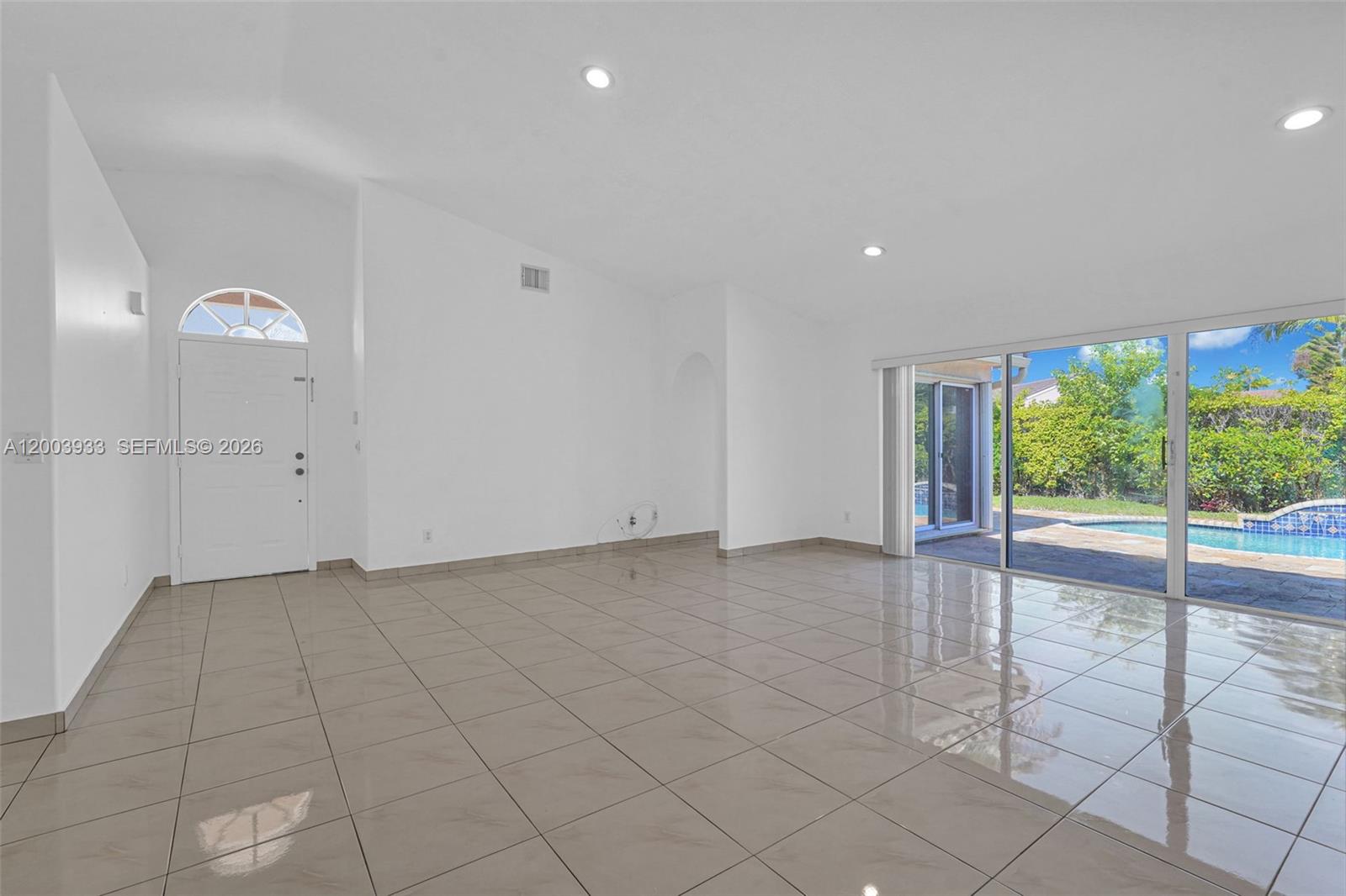 This charming single-story residence offers three bedrooms, two bathrooms, and a two-car garage, all set within the secure, gated community of Pembroke Shores. The home is filled with natural light and features an open layout with soaring vaulted ceilings spanning the kitchen, living room, family room, and formal dining area. The kitchen is well-appointed with granite countertops, wood cabinetry, and a cozy breakfast nook. The primary suite includes a spacious walk-in closet, a separate vanity area, a walk-in shower, and a relaxing Roman-style soaking tub. Durable tile flooring run throughout the home. Outside, a generously sized fenced backyard with a free form pool creates an ideal setting for gatherings and outdoor enjoyment. Pool services are included, along with a full-size washer and dryer, and hurricane shutter panels for added protection. Conveniently located near major highways, shopping, dining, and entertainment, this professionally managed property requires HOA approval. Applicants aged 18 and older must complete an online application with a fee per adult, along with providing proof of income, identification, and residence history. Renters insurance, including pet liability coverage if applicable, is required prior to move-in.