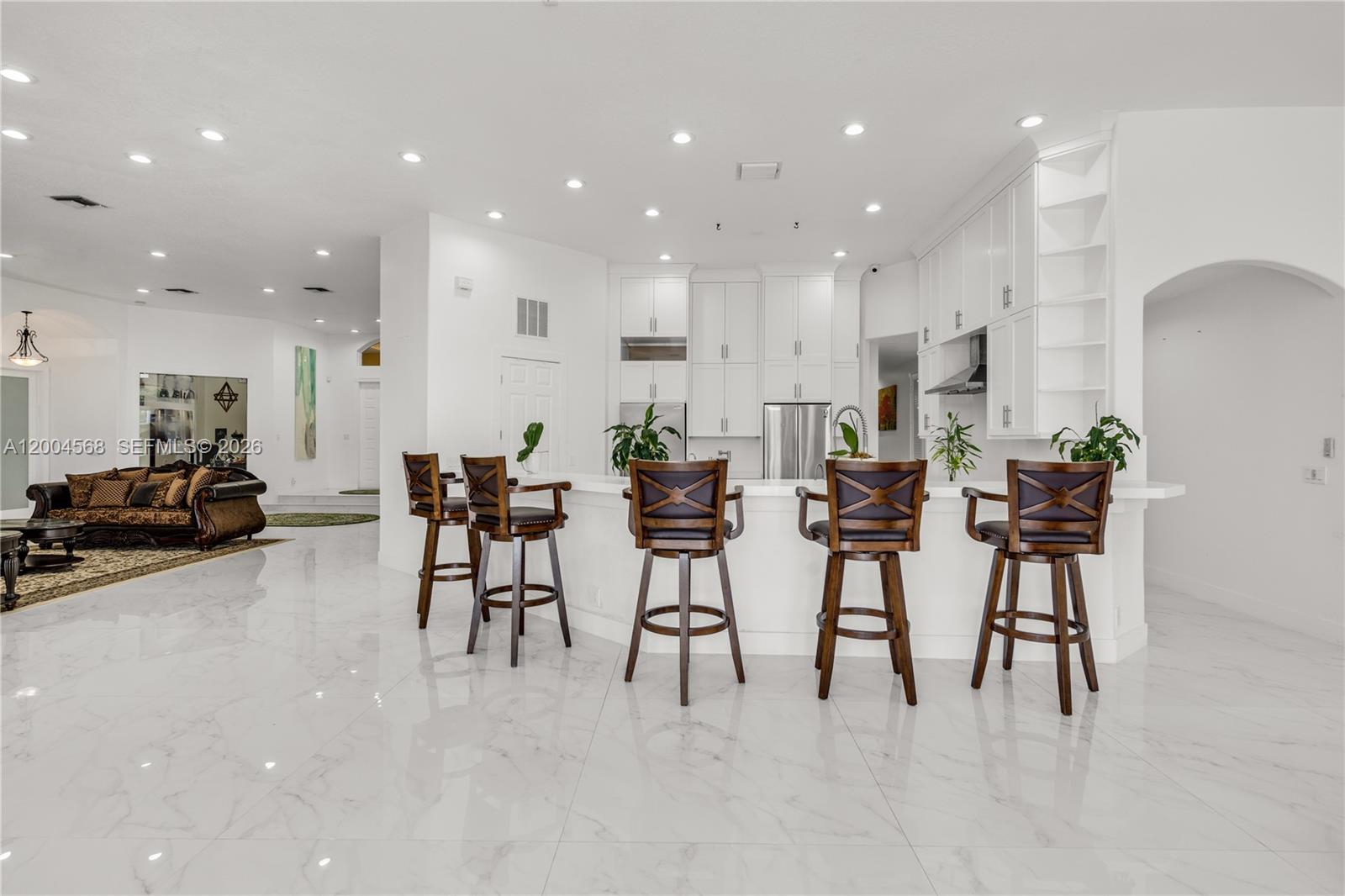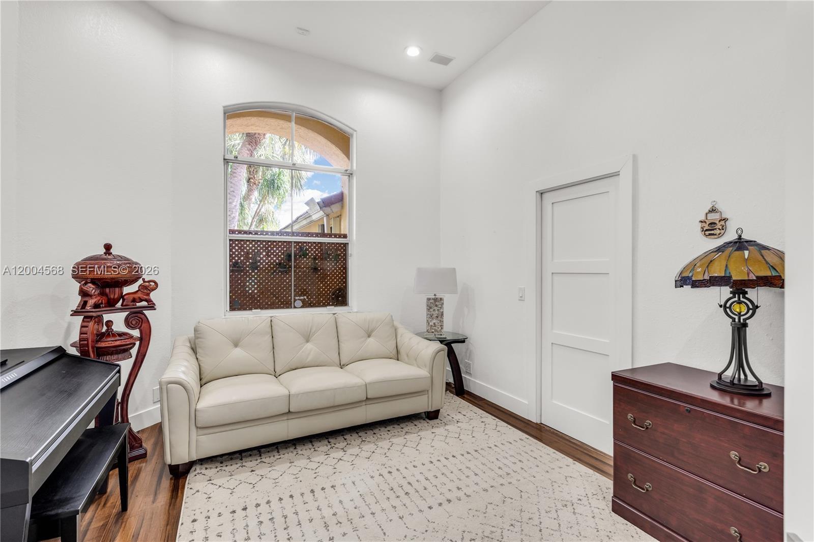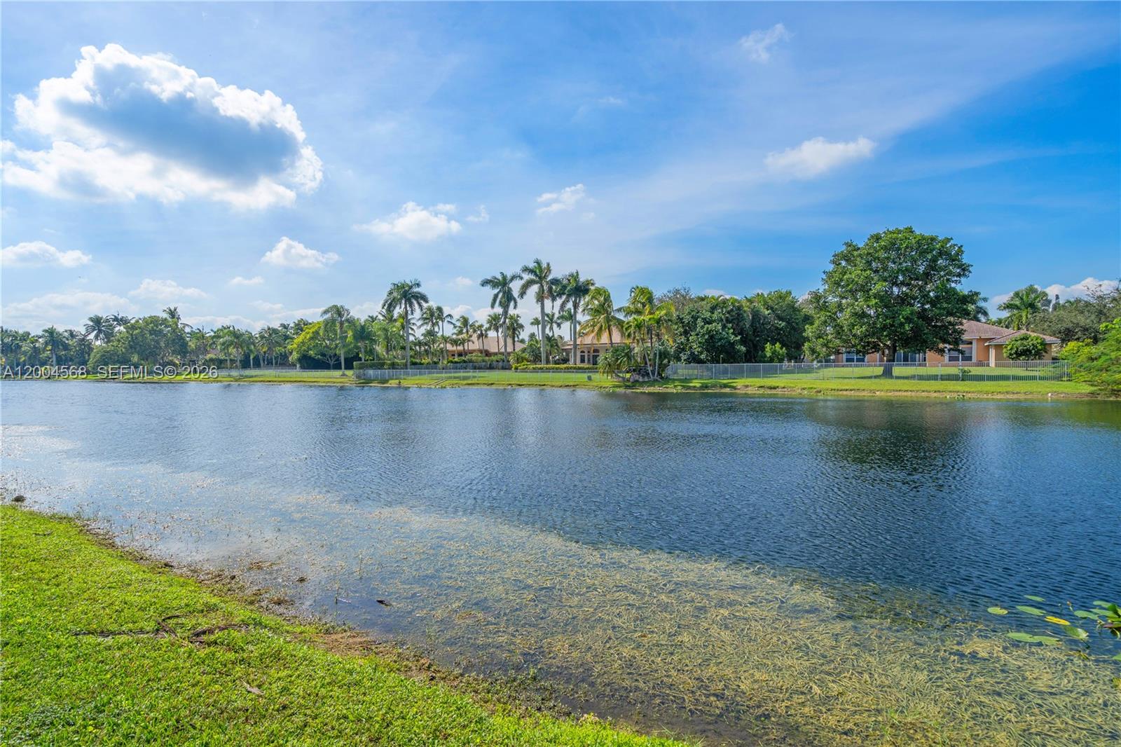 Beautiful waterfront estate in the prestigious gated community of Emerald Springs Estates. Huge open great room floor plan. 5 large bedrooms (all 5 suites), plus two office dens, 6 bathrooms, formal living room, family room, also a Florida room, gas range, stainless steel appliances, wood burning fireplace. Entire rear of house is glassed for ultimate view of the infinity pool (heated), rock water falls and spa, lake front, whole house generator, solar panels, extended 3 car garage, rolladen shutters, full alarm with built in camera system, speakers throughout great room, patio and pool area, and lush landscaping. Pool and lawn maintenance are included in the price. Available for 6-12 month lease with option to renew long term.