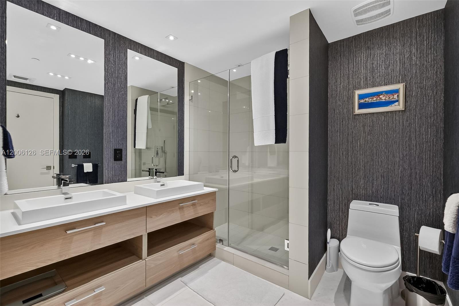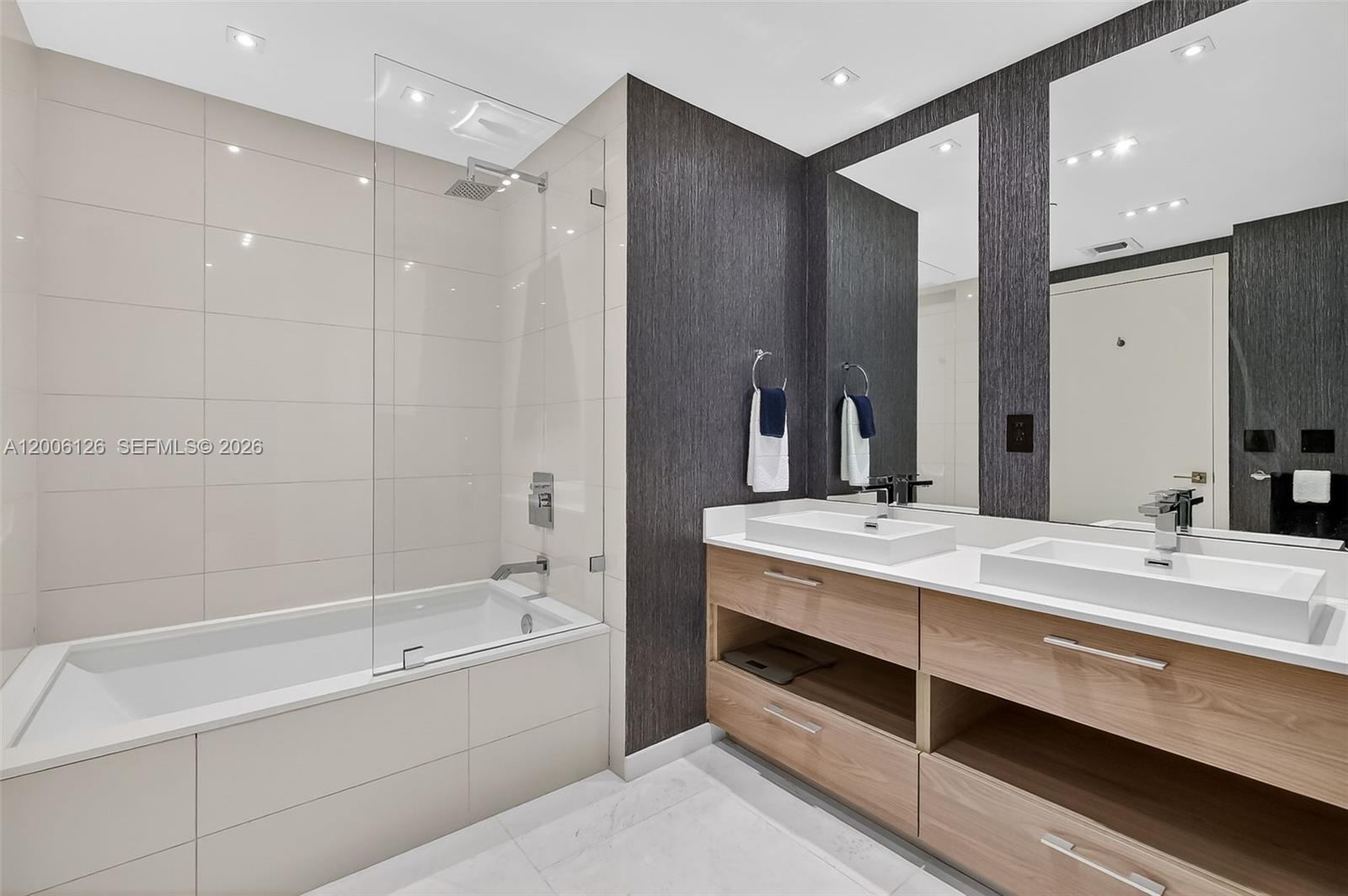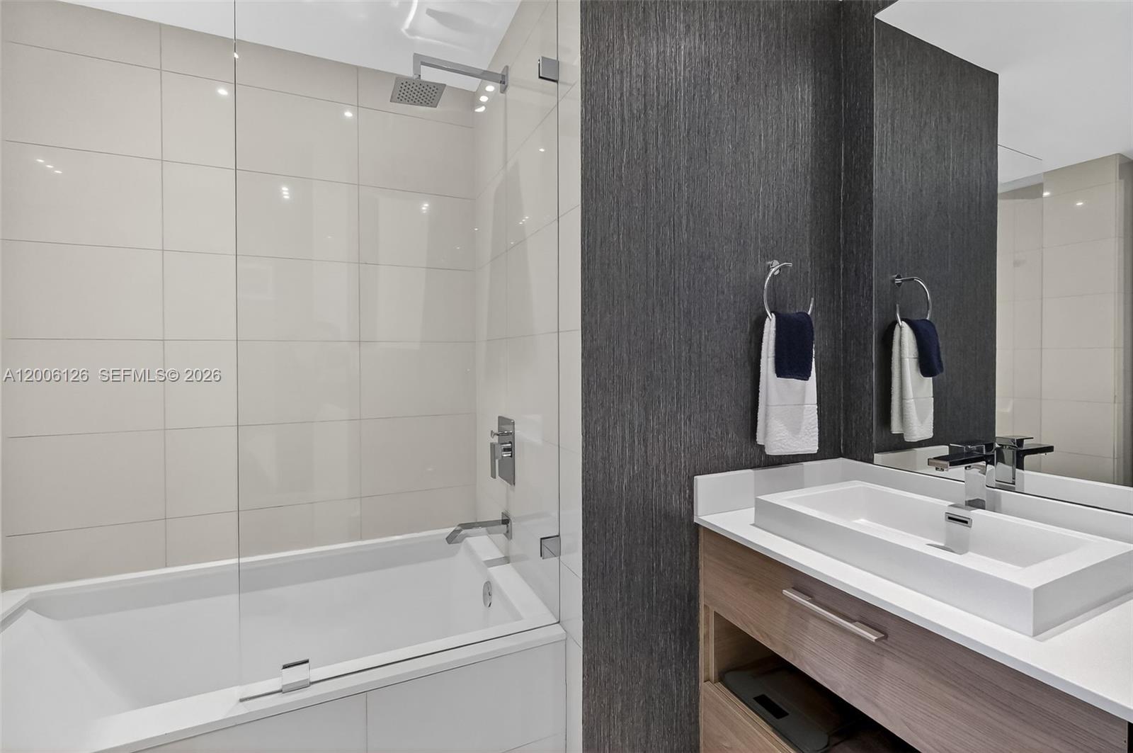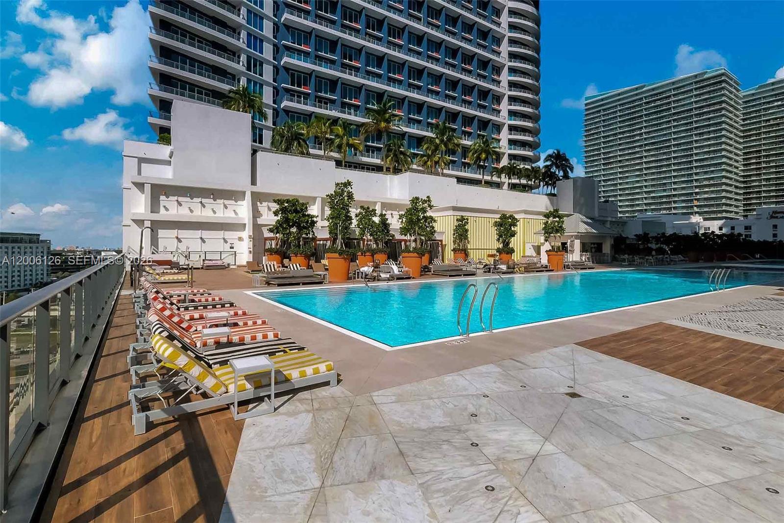 Live at the extraordinary SLS Brickell! This gorgeous 1-bed, 2-bath + den is one of the largest 1-bed floor plans in the building. Facing east, this residence offers stunning panoramic bay & city views. The spacious balcony is perfect for relaxing or entertaining. Features include designer finishes, custom lighting washer/dryer, and shelving while the open kitchen has stainless steel appliances, plenty of cabinets, and quartz countertops. The den is great for flexible use and is already set up with a queen bed, TV and shelving. Great closets, window shades + blackouts in bedroom and the large Turkish marble floors complete the space. Enjoy 5-star amenities: a rooftop pool, full-service spa, state-of-the-art fitness center, clubroom, ballroom, kid’s room, two pools, 24-hour concierge and security & top restaurants right downstairs. The perfect Brickell location close access to highway without all the center Brickell traffic, stroll to tons of cafes, dining, shopping, Brickell City Center & nightlife. The perfect blend of luxury and comfort. Easy to show. Schedule your showing today! ?Available May 1, 2026.