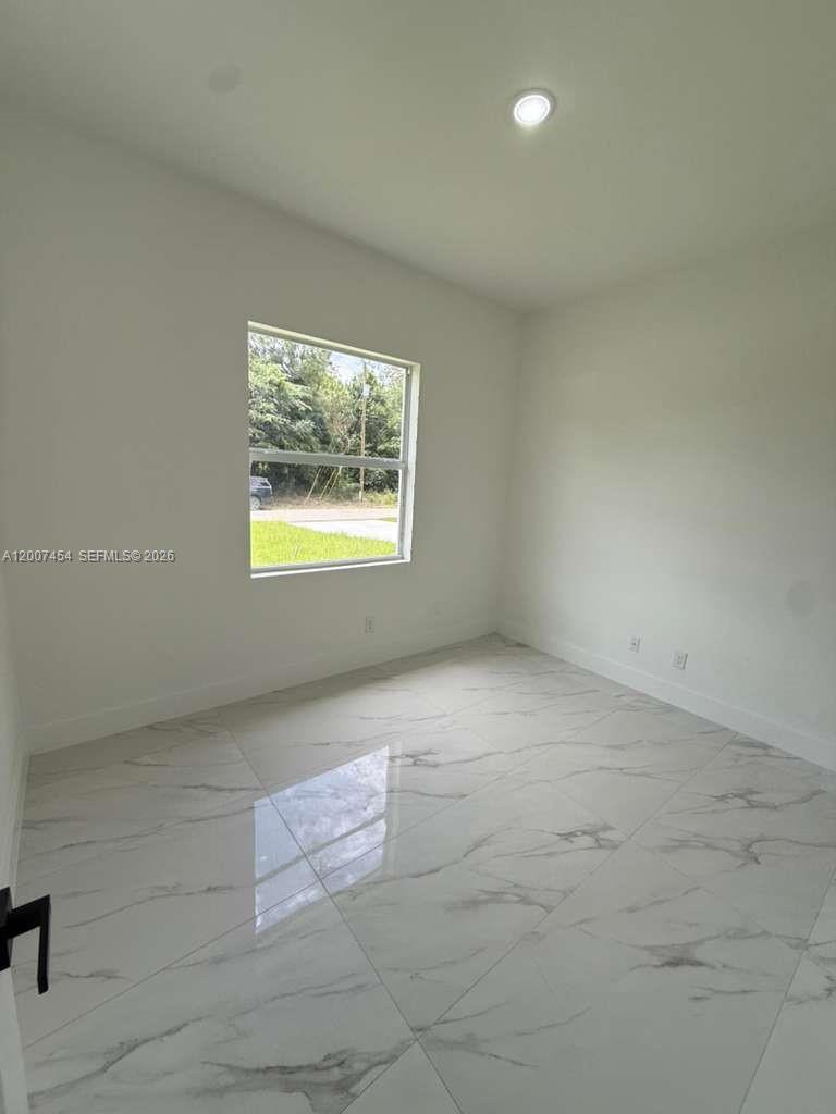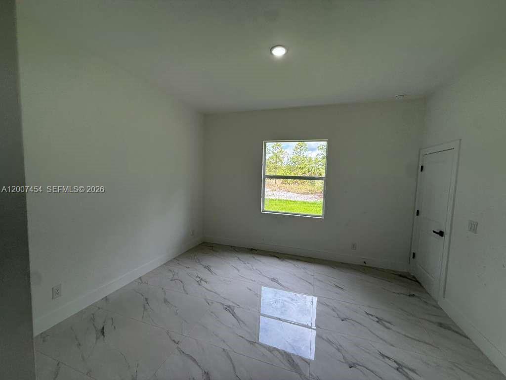 Brand New Construction in Lehigh Acres Beautiful new construction featuring 3 bedrooms + den and 2 full bathrooms, designed with a bright open-concept layout and modern finishes throughout. Enjoy porcelain tile flooring, high ceilings, and a sleek kitchen with quartz countertops, large island, stainless steel appliances, and custom cabinetry. The flexible den is perfect for a home office, guest room, or additional living space. Additional highlights include impact windows and doors, 2-car garage, and a dedicated laundry room. The primary bathroom offers a double vanity with contemporary design. Located on a spacious lot in a growing area of Lehigh Acres, this home is ideal for both end-users and investors, offering strong rental potential and long-term value.
