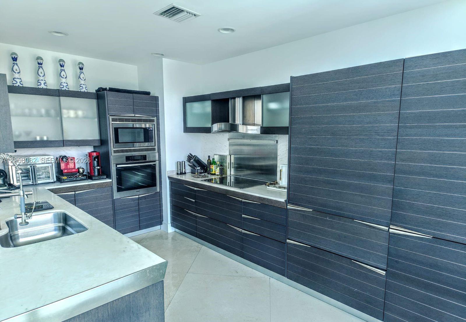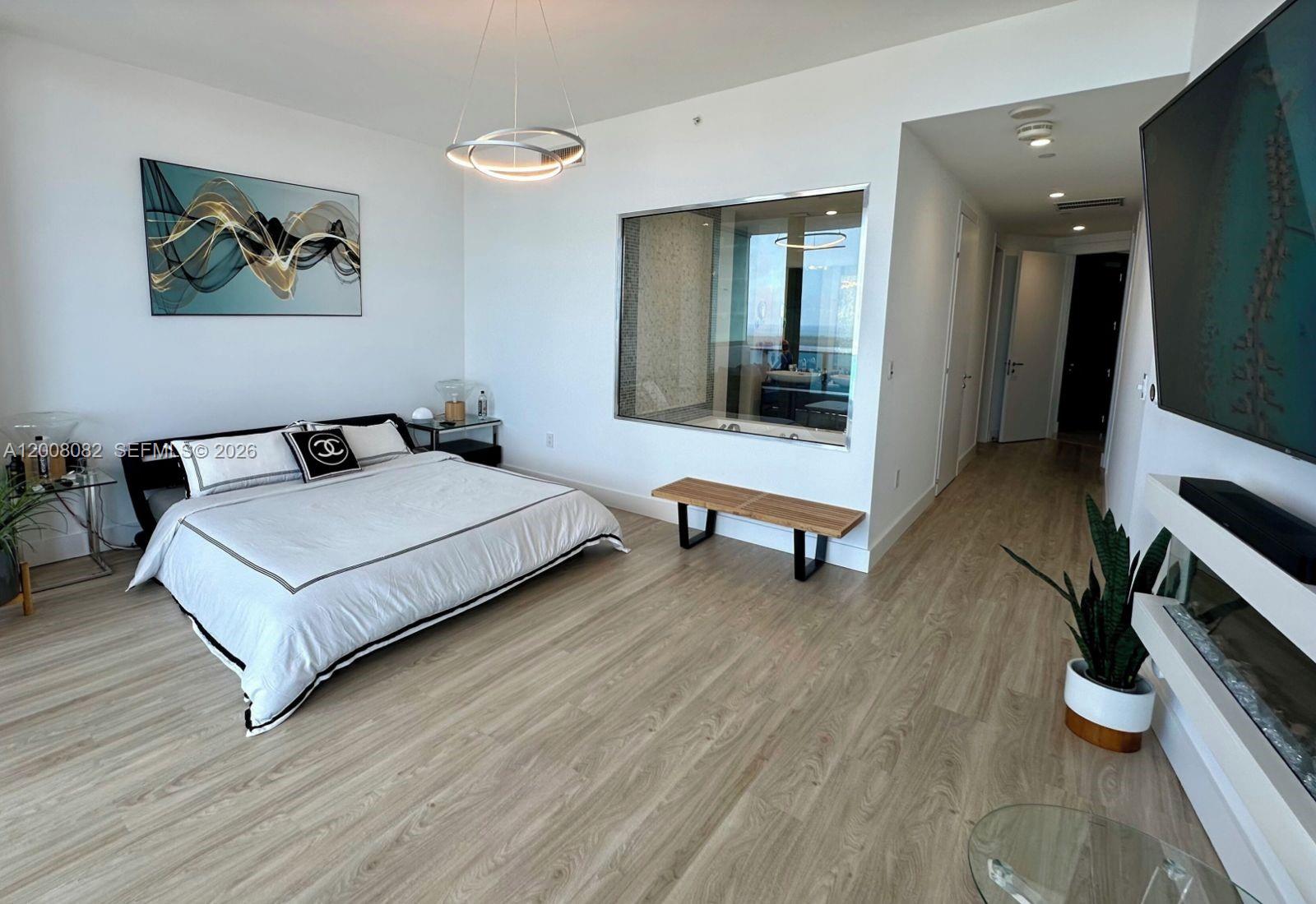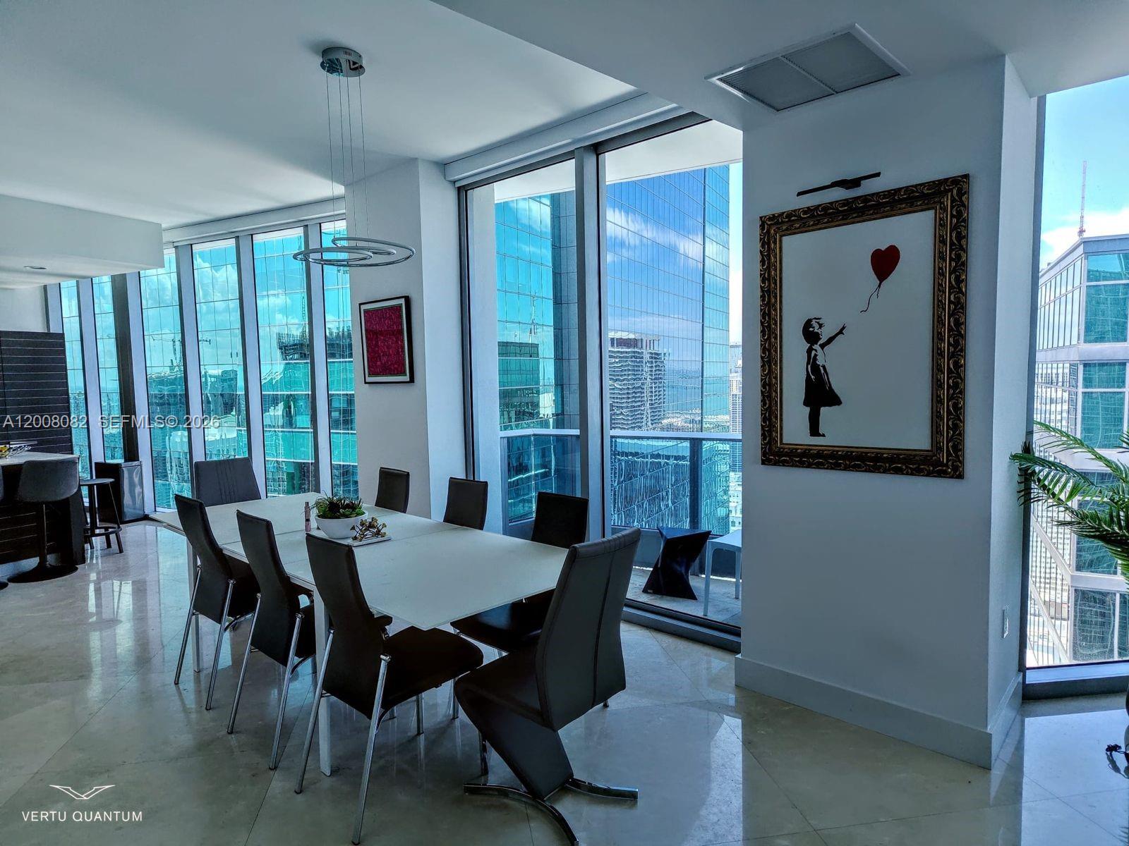 PENTHOUSE living at its finest. This spectacular corner residence is situated at the vibrant intersection of Downtown and Brickell, perched high above the Miami River. Spanning 2,457 square feet, the home offers a seamless blend of sophisticated style and breathtaking water views. The expansive open floor plan is framed by ten-foot ceilings and floor-to-ceiling glass. Every room serves as a private sanctuary, featuring its own balcony to take in the shimmering skyline and river vistas. The interior finishes are extraordinary, with marble and wood flooring flowing beneath custom light fixtures. The chef's kitchen is outfitted with Calacatta marble, Italian cabinetry, and a high-end appliance suite by Sub-Zero and Miele. For ultimate comfort, the home is equipped with motorized blinds, three fireplaces, and televisions in every room. The main living area is anchored by a massive 100-inch TV and a professional Bose home theater system. Each of the three bedrooms features a private en-suite bathroom. The primary suite is a true retreat, boasting a large walk-in closet, a 75-inch TV, and an opulent bathroom with an oversized soaking Jacuzzi tub. Residents live the Epic lifestyle, steps away from the finest dining and nightlife. The building offers resort-style amenities, including in-room dining, a fitness center, and a full-service marina. Enjoy world-class dining on site at Zuma or relax at the elite spa and pool deck. This is the ultimate Miami address. Waterviews & Skyline.